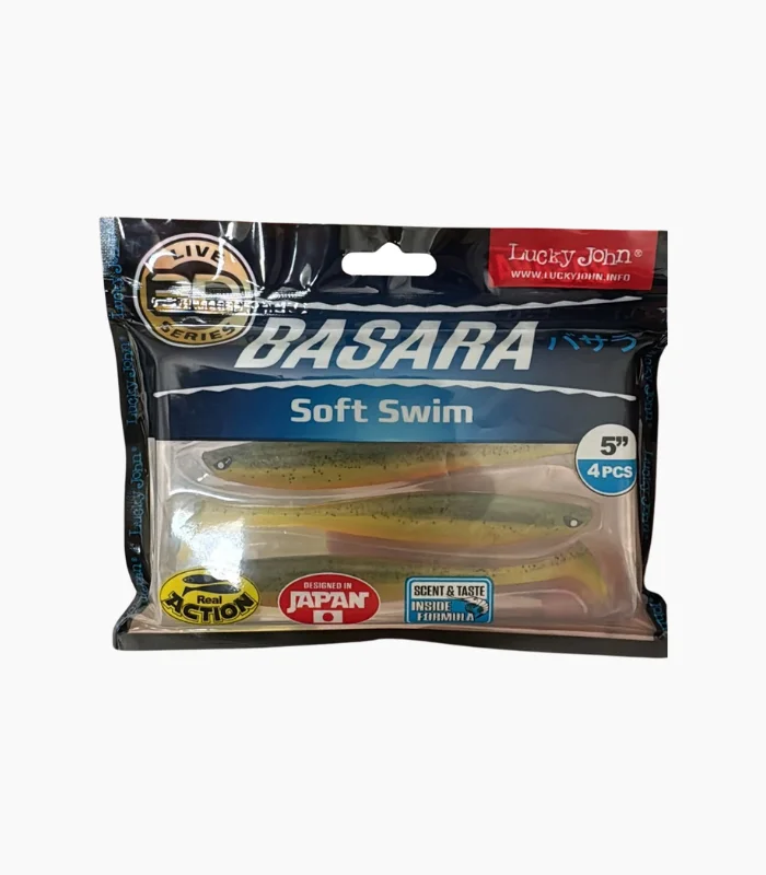 Turna ve levrek avcılarının favorisi Lucky John Basara 5″ silikon yem. Doğal balık görünümü, 3D yapısı ve özel koku/tat formülüyle trofe balıkları cezbeder. Paket içi 4 adet.